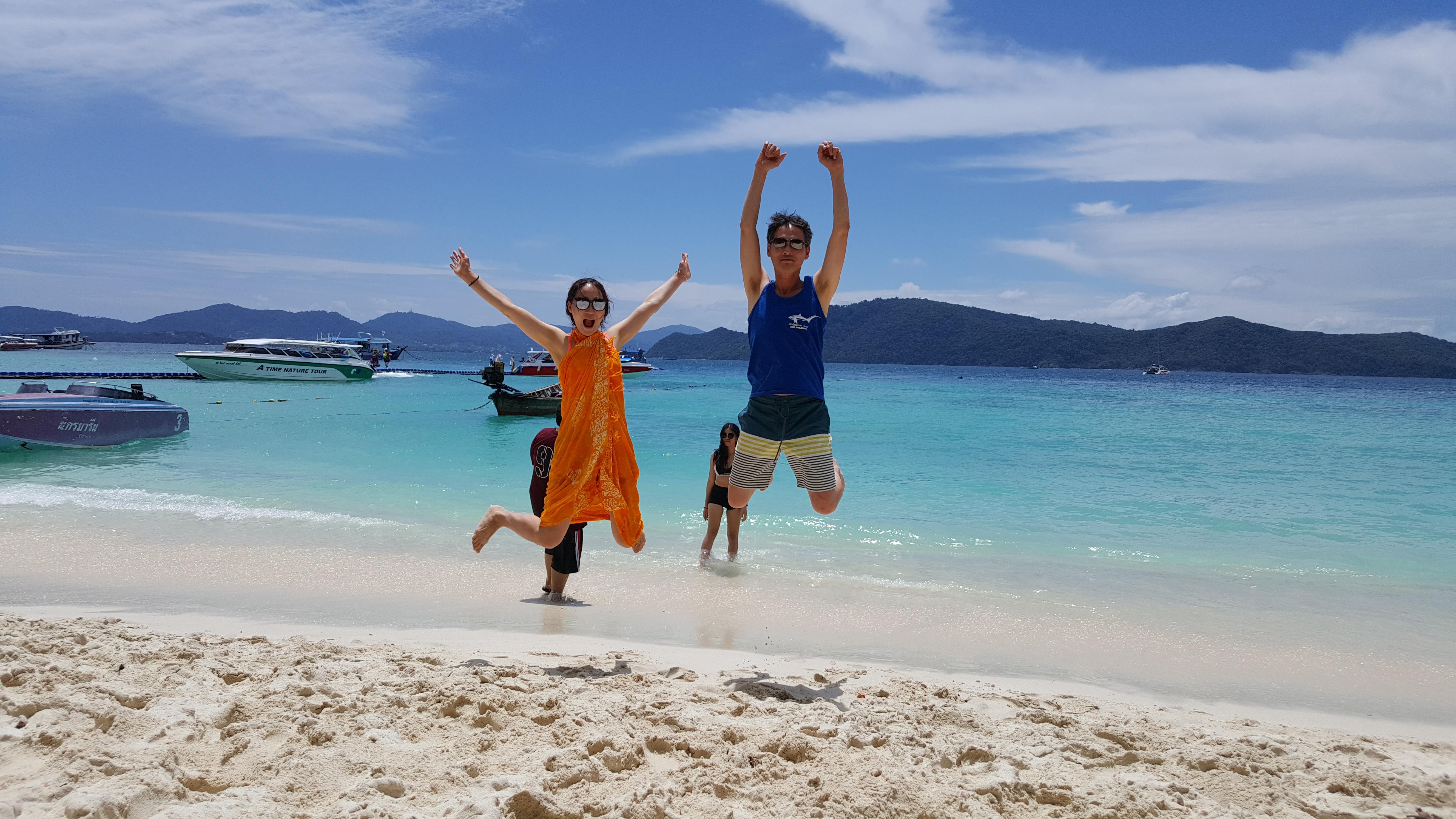 푸켓/피피 다이빙 무사히 마친 후, 다음날은 가족들과 근처 산호섬 비치에서 물놀이와 요트타고 낚시를 하는 동안은 해가 쨍쨍, 찰롱부두로 돌아오자마자 비바람이 몰아치기 시작하더니 숙소에 도착해서는 폭풍수준이다.