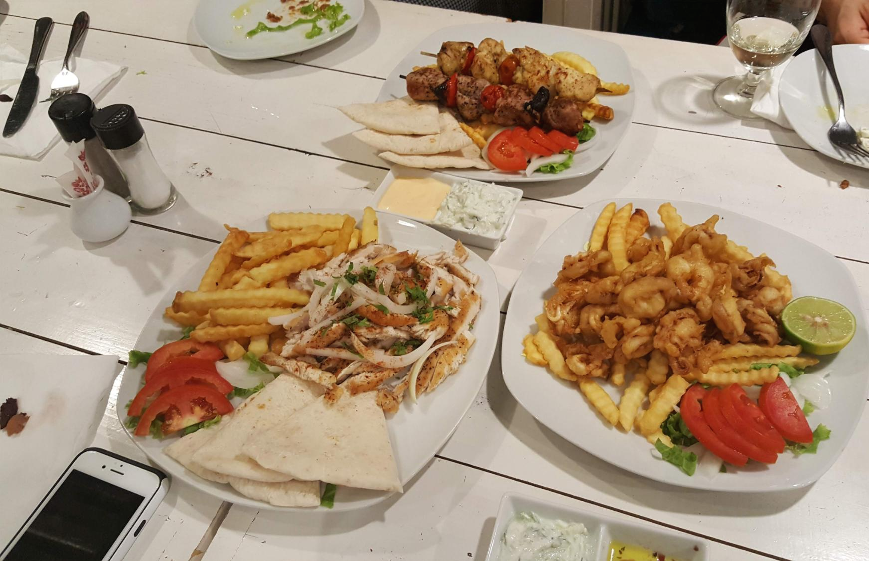 수불라키, 기로스, 그리스식 새우요리인 Garides Saganaki 등을 시켜 Pita에 싸 먹던 맛!