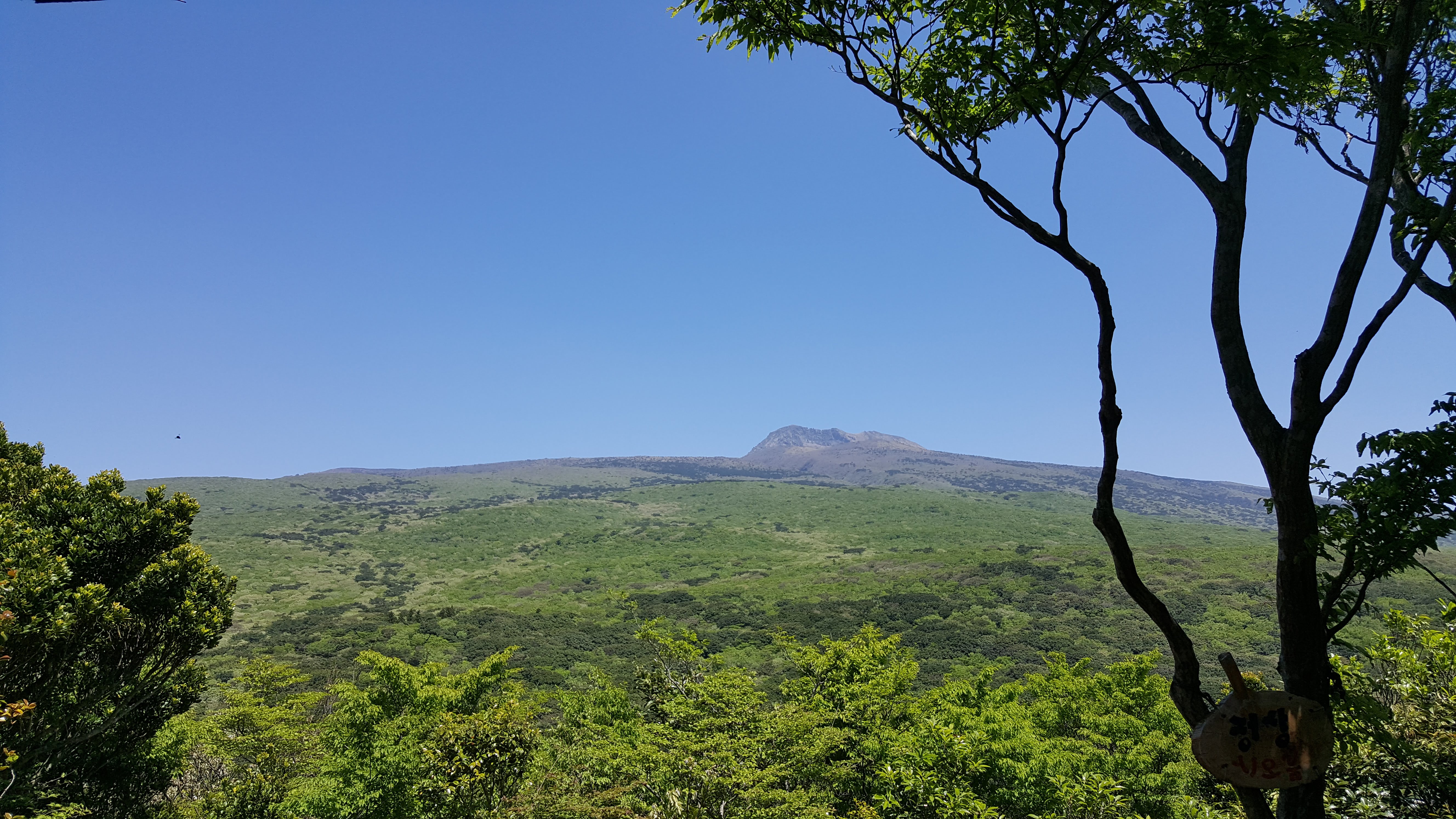 치유의 숲 상단에서 시오름으로 올라 봉긋 솟은 한라산 정상도 바라볼 수 있다.