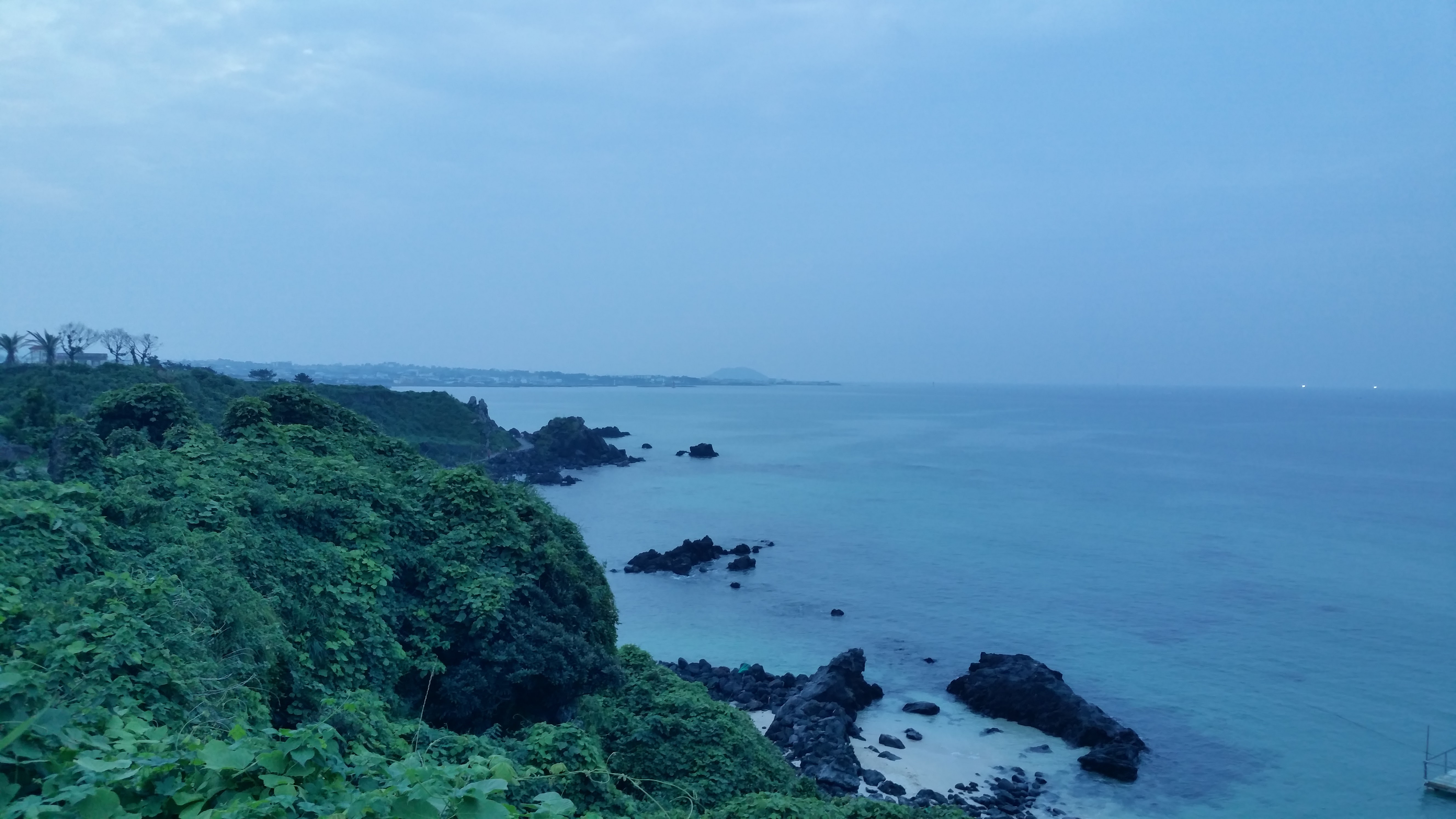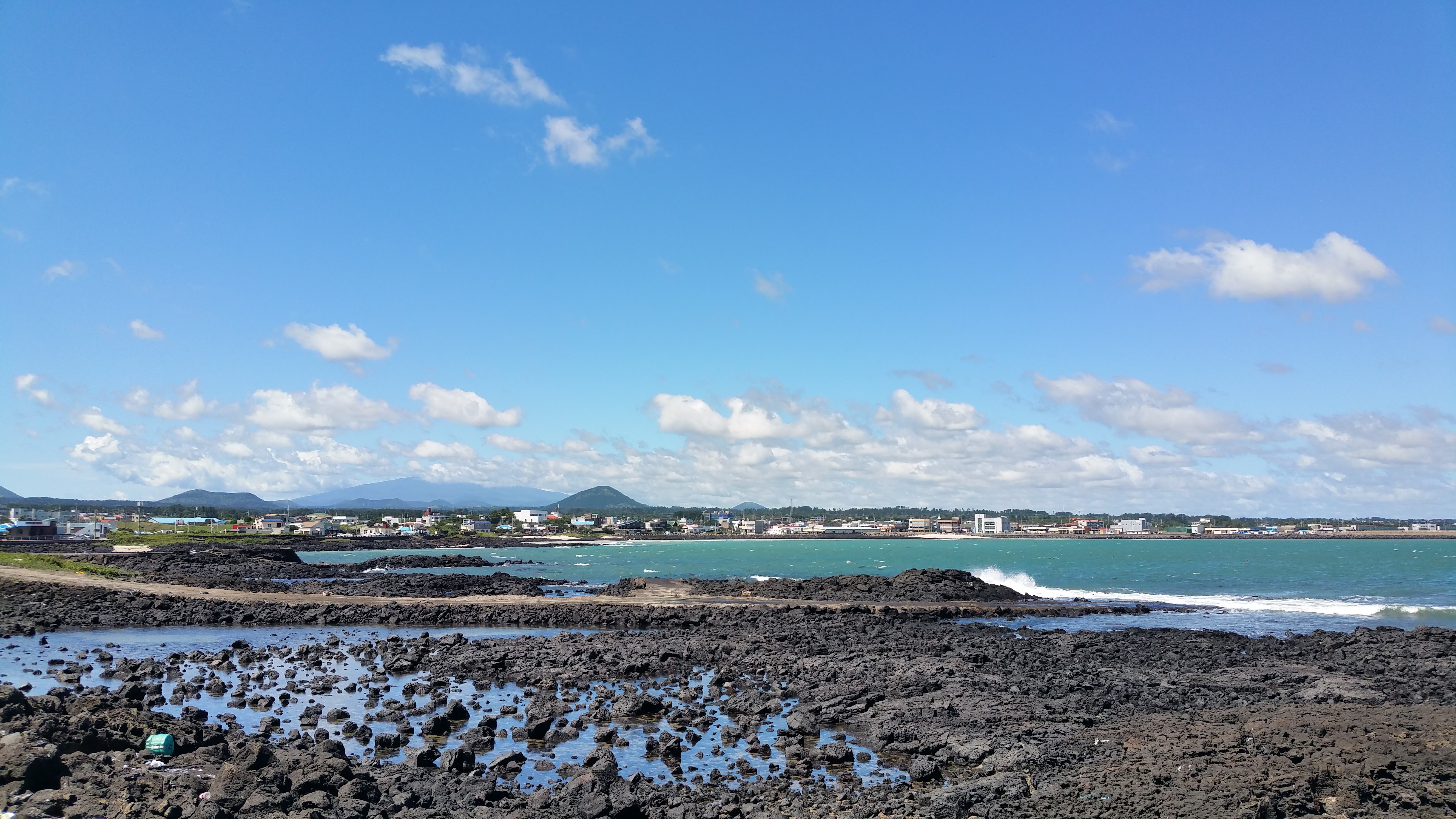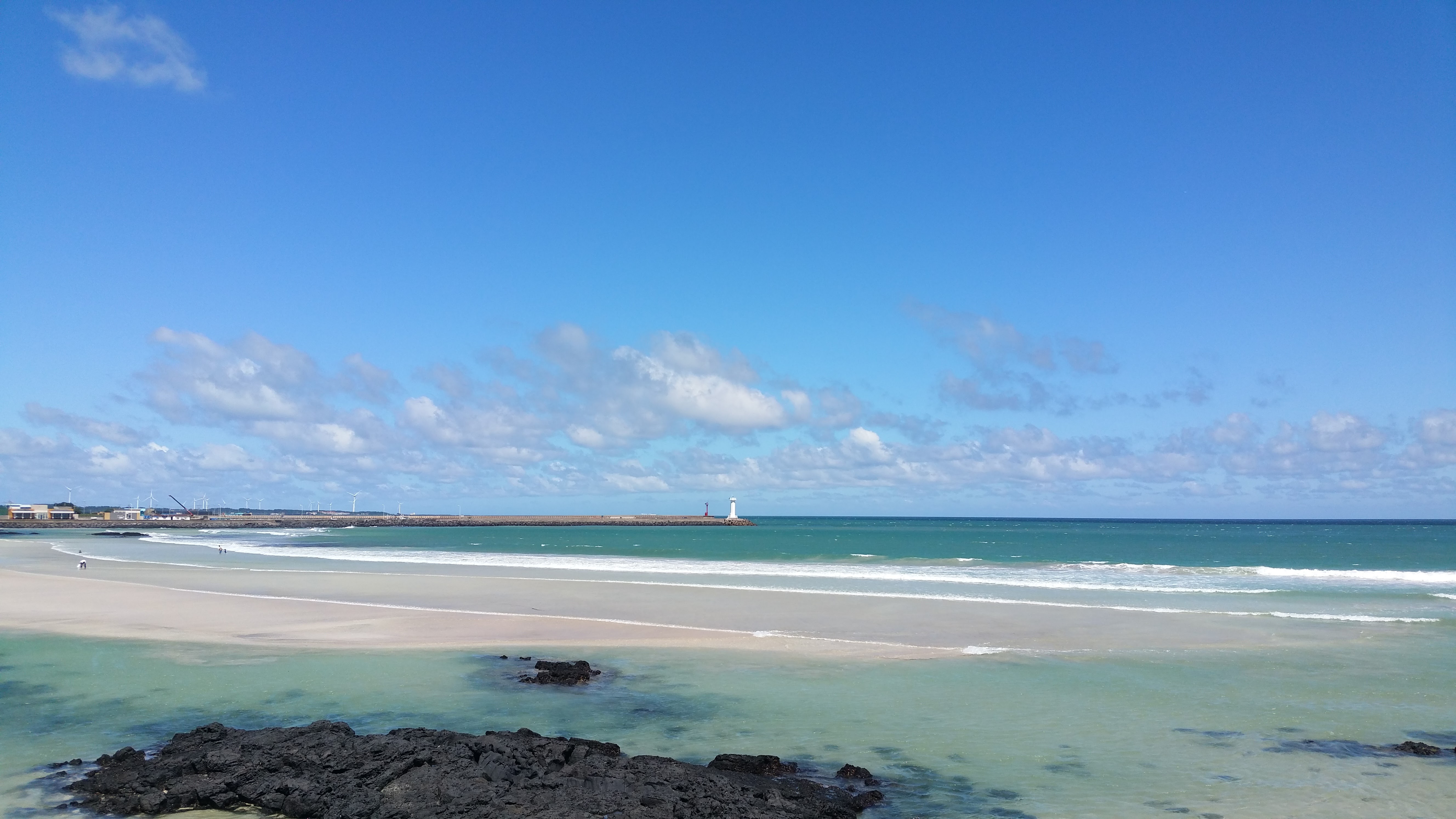 제주시에서 성산방향 동일주도로 따라 파란 하늘 가운데 하얀 구름, 하늘과 연결된 바다, 파도 그리고 백사장 옆으로 난 길을 걷거나 드라이브할 수 있는 구좌/김녕의 하도-세화-평대-월정리 해안도로를 만난다. 여기 저기 카페도 많이 들어서고 점심/저녁 정해진 시간 음식과 와인, 음료를 파는 조그만 비스트로나 트렌디한 인테리어를 더한 분식집과 디저트 가게들과 사람들로 넘쳐나는 곳! 10여년 전 월정리 바닷가 아일랜드 조르바의 커피 한잔과 즐기던 여유가 그리워지는 해변 산책길, 아침 새벽이나 오전 날씨 좋은 날 이곳은 남국의 휴양지 부럽지 않은 하늘과 바다 색감을 보여준다.