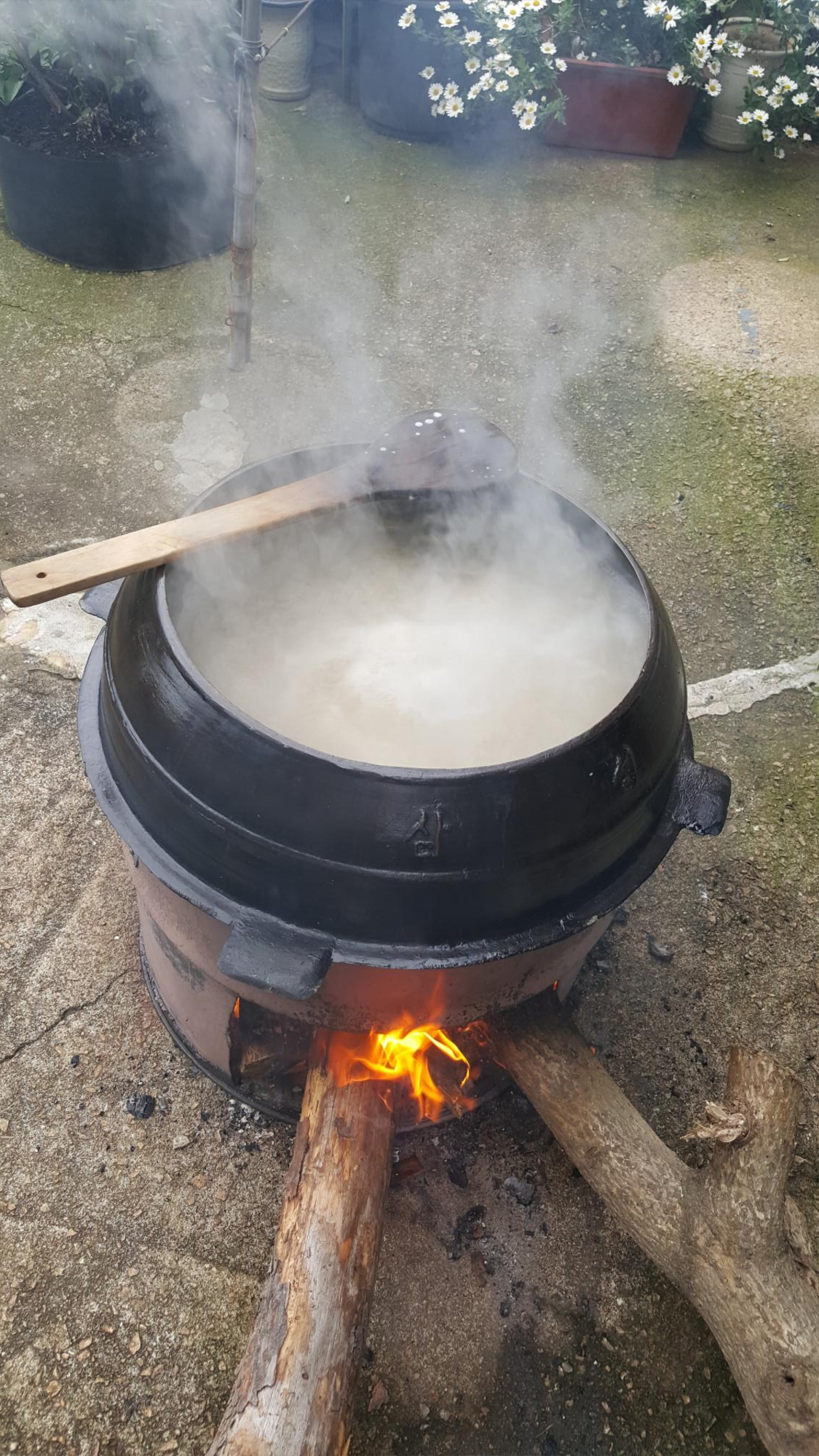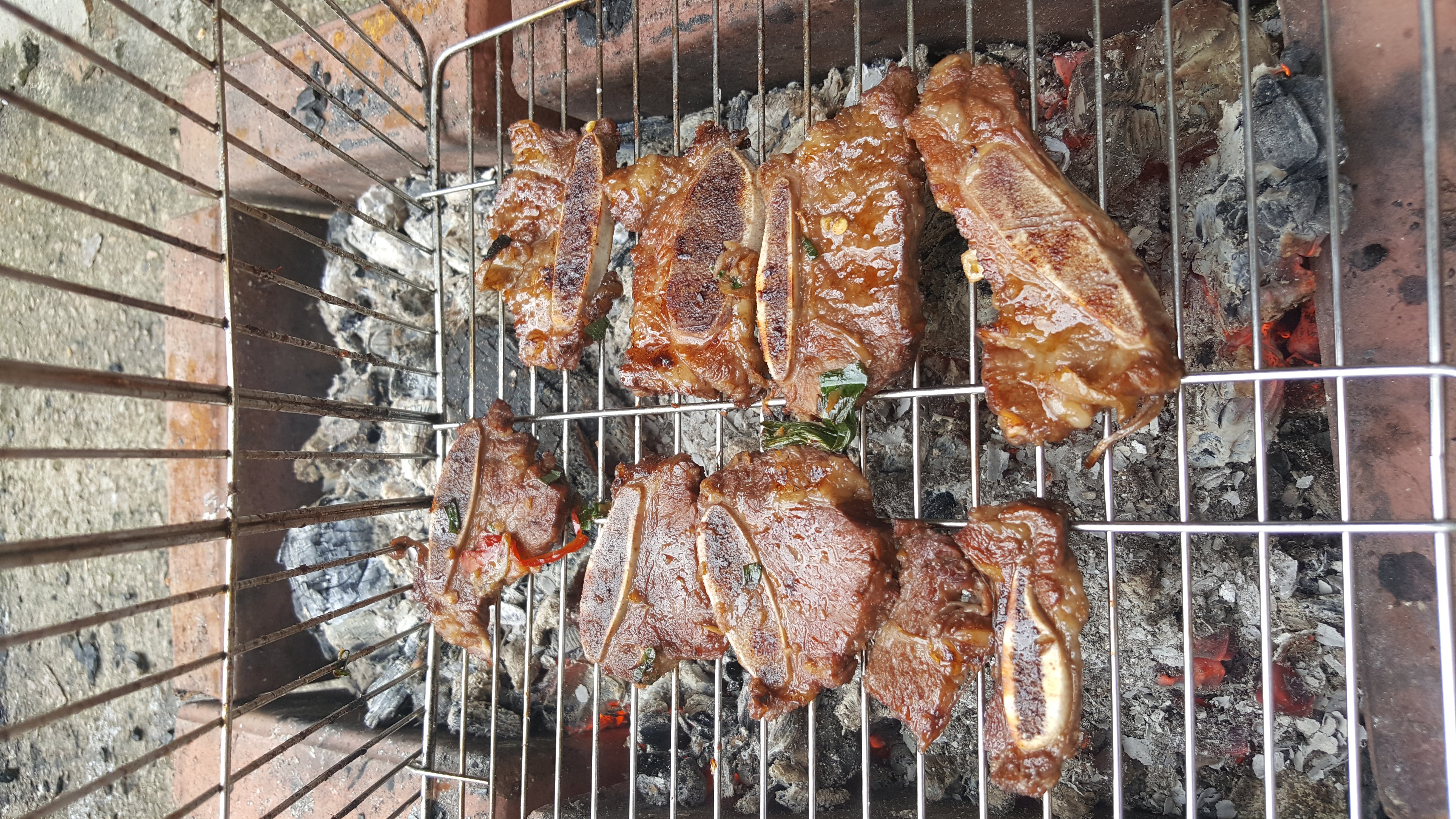 조청달인 후 가마솥 숯에 고기를 구워 먹는 맛도 재미도 솔솔~~