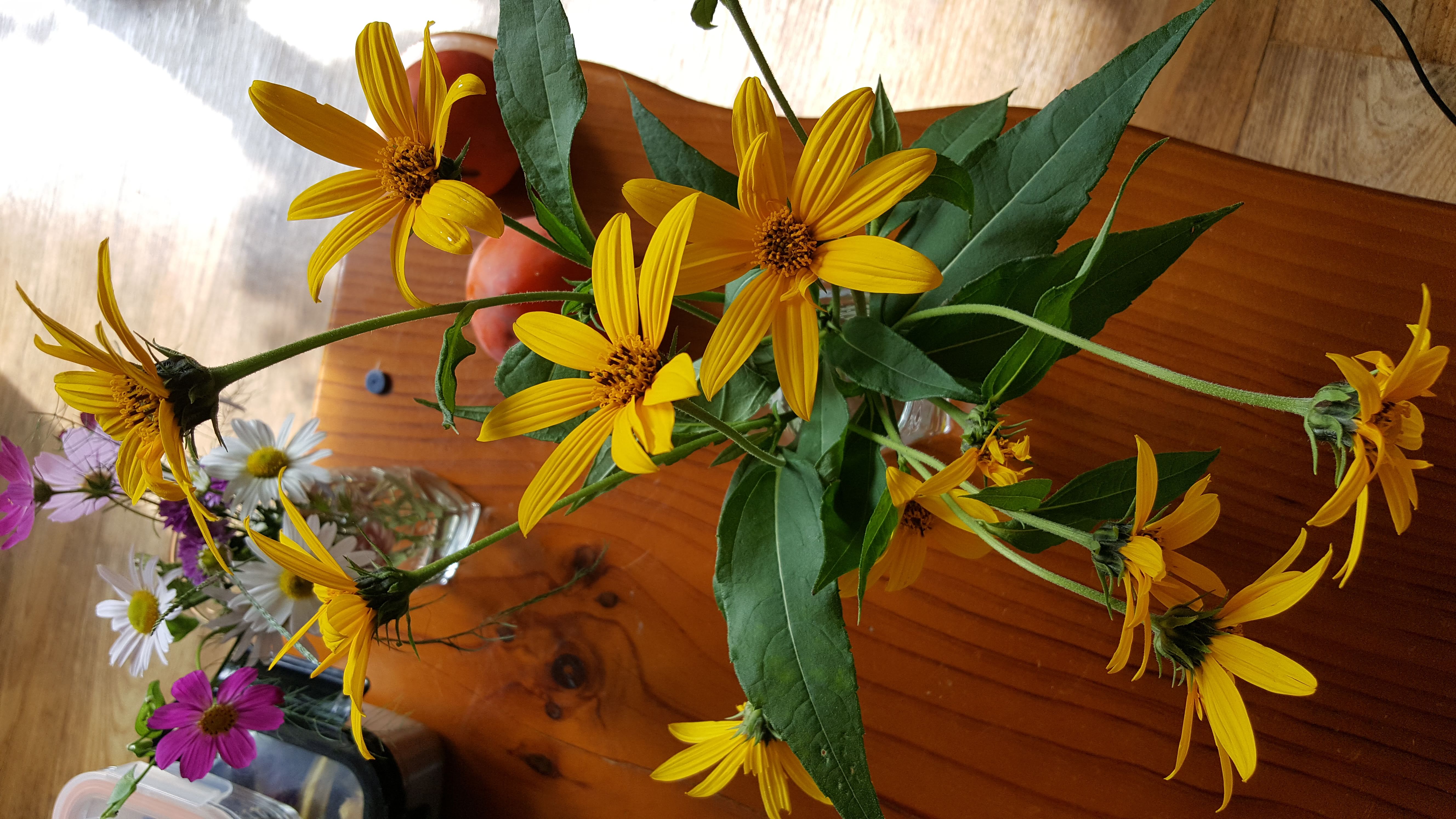 구절초, 코스모스, 노랑/보라 국화... 상상하지 못한 이름 뚱딴지꽃(돼지감자꽃이랍니다), 그리고 계절을 잊은 사과꽃까지... 바라보기만 해도 기쁨을 주는 가을꽃들!