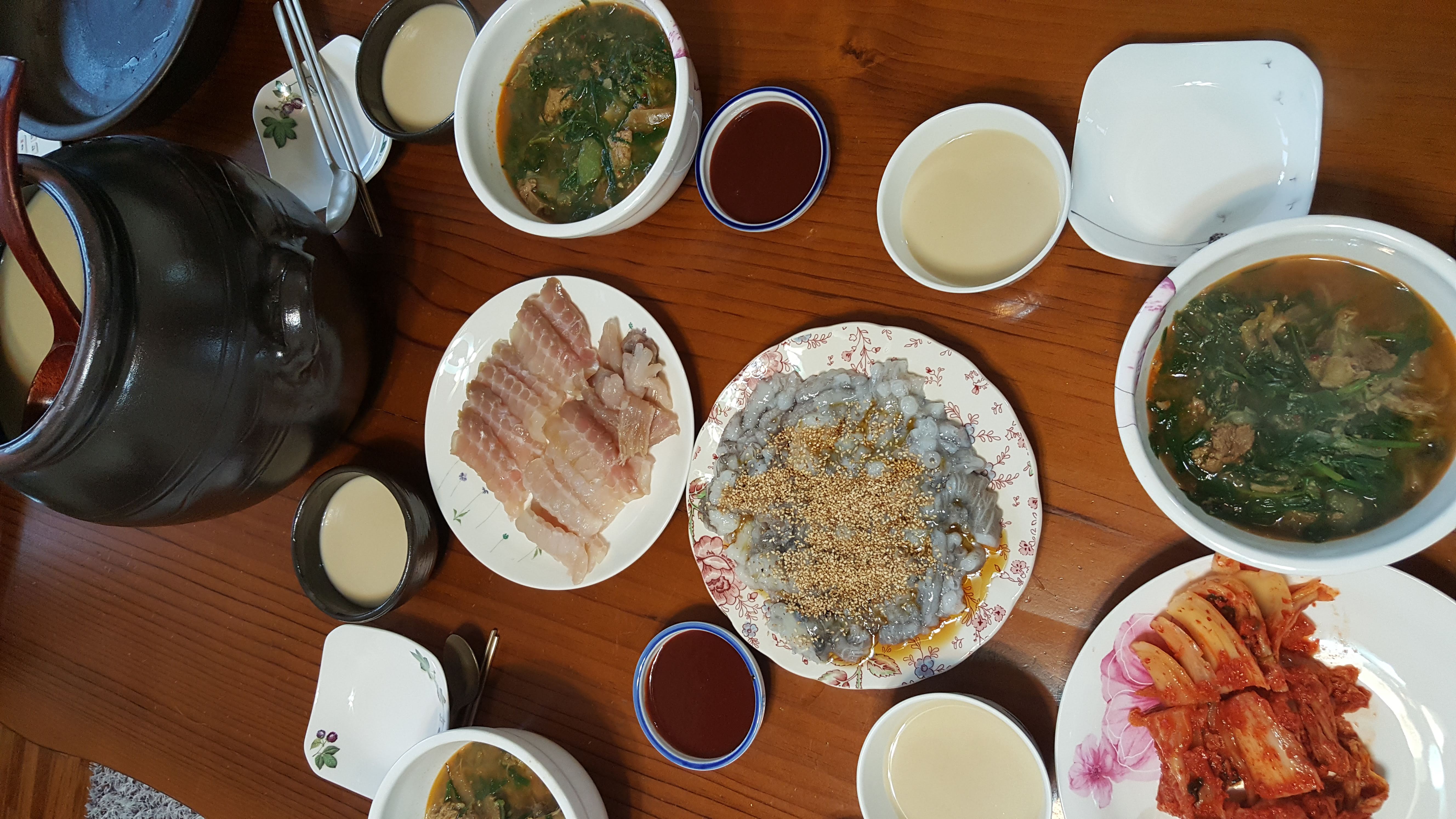 같이 사온 홍어회에 일주일 동안 잘 익은 막걸리, 산낙지도 몇 마리 더해 탕탕이까지.... 겨울에 어울리는 한상입니다.