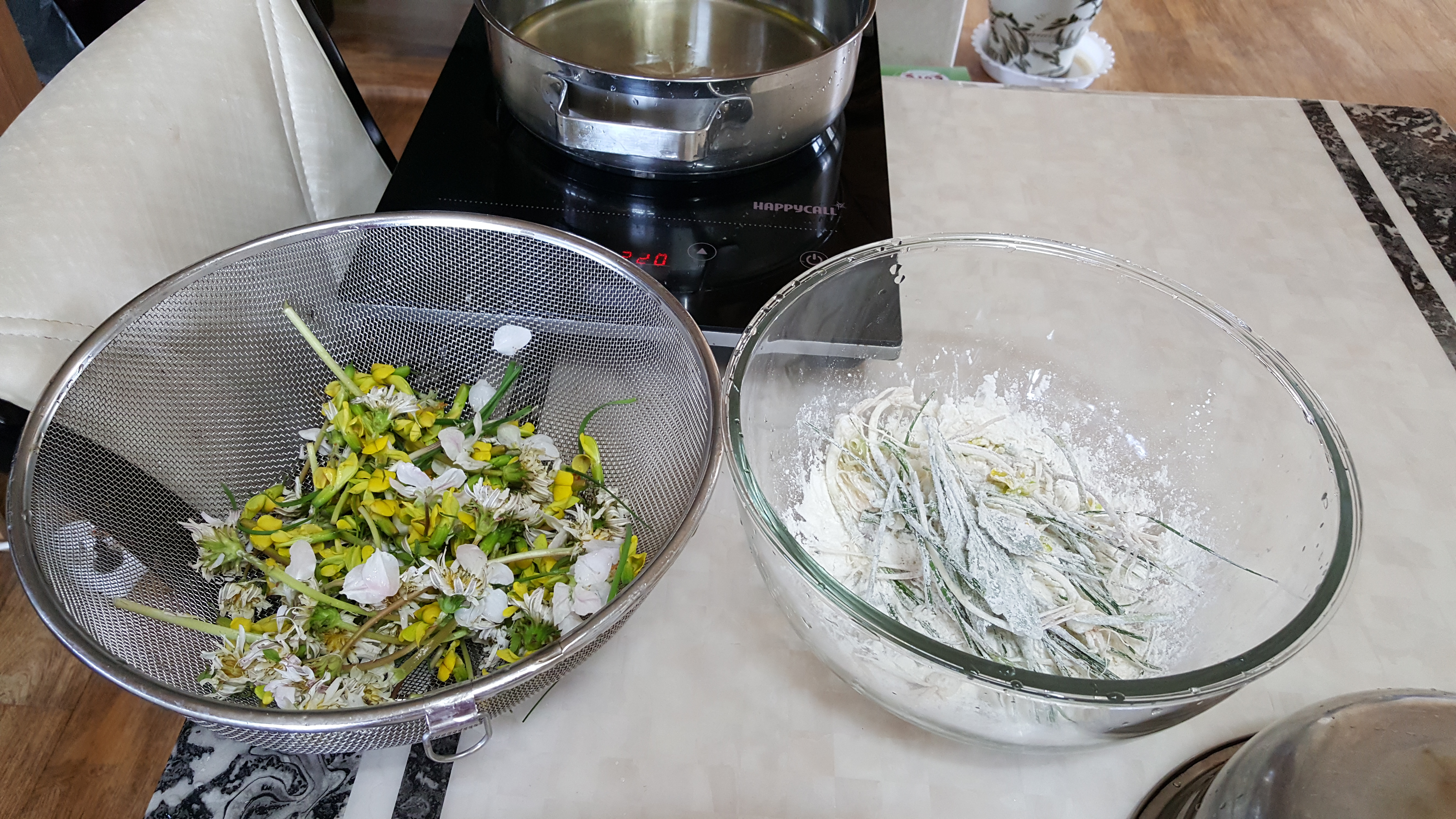 6.먹고놀기(Food & Playing)/61.제철음식과 식도락 이야기(Seasonal food and gastronomic story) 2020. 4. 20. 06:32새참으로 동죽부추전, 두릅튀김, 골담초/민들레/사과꽃/달래 튀김, 당귀/방풍 장아찌, 달래무침!