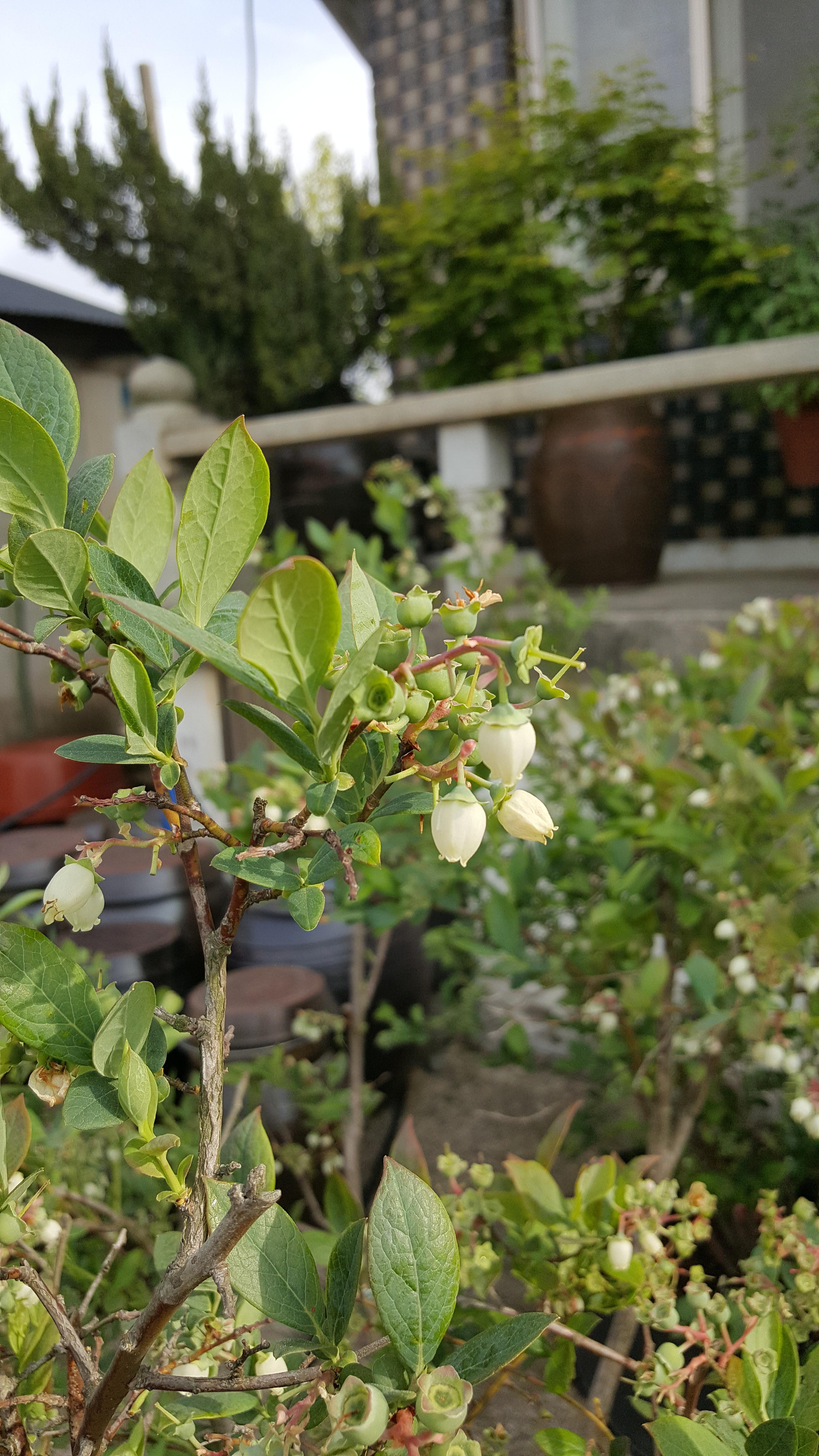 새벽마다 제법 큰 새 두 마리가 찾아와 사과꽃, 블루베리꽃을 따먹는다.