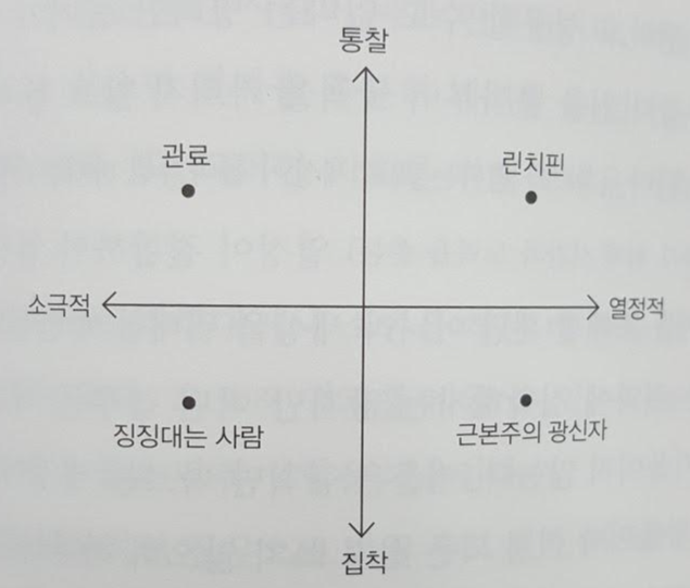 지금 우리 사회는 변화해야 하는 시기를 변화를 거부하는 사람들이 조직에 끝까지 남아 있기 때문에 혼란을 겪고 있다. 많은 보수를 챙겨가는 고지식한 관료, 지시받은 일만 하는 사람, 문자 그대로 해석하는 사람, 규율을 꼼꼼히 따지는 사람, 주말만 기대하는 사람, 안전한 선택만 추구하는 사람, 회사에서 잘리지 않을까 늘 걱정하는 사람들이 조직을 지키고 있다. 앞으로 무엇을 해야 하는지 알지 못하는 상황에서 고분고분 말 잘 듣는 무리는 별다른 도움이 되지 못한다.
