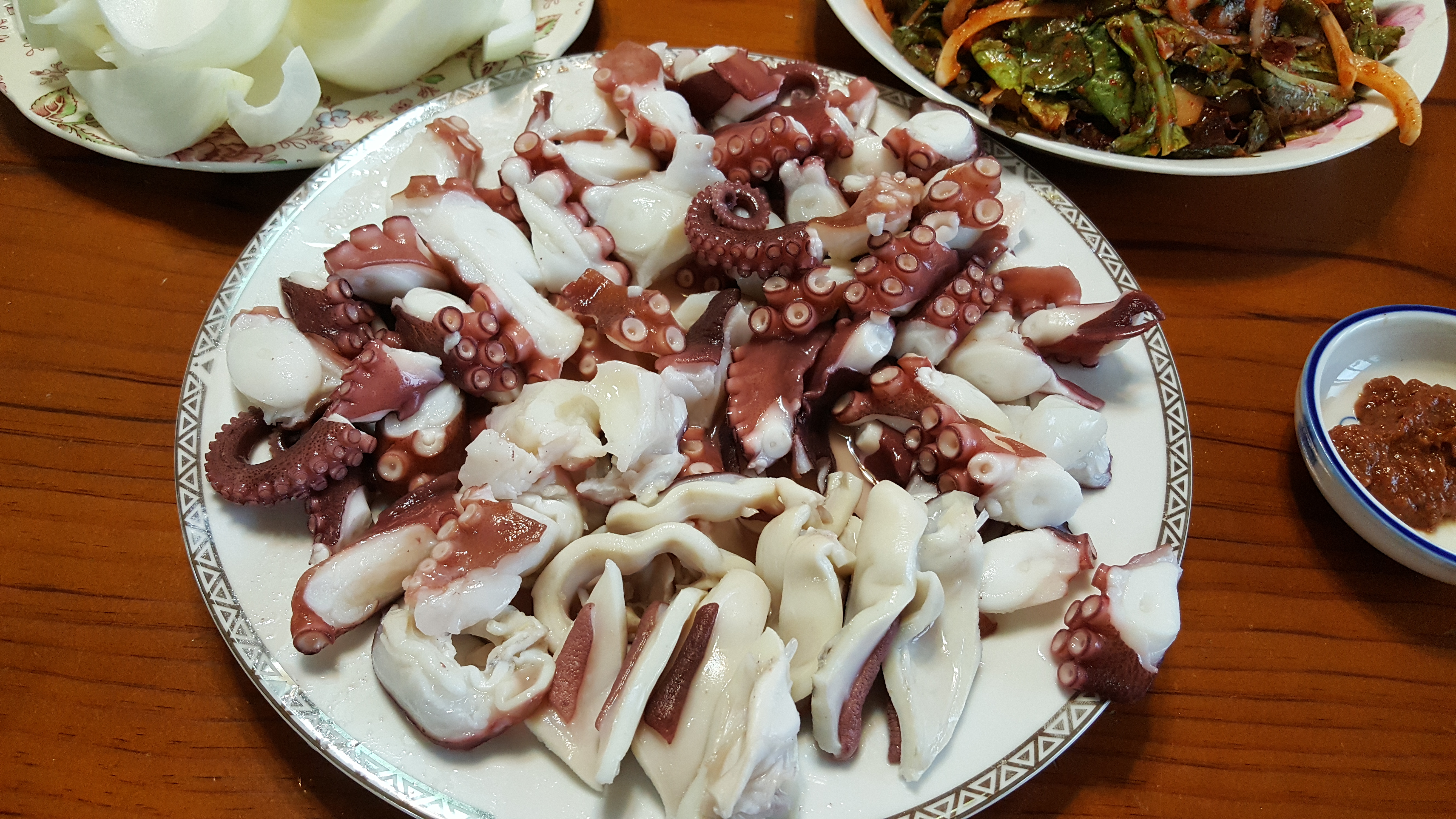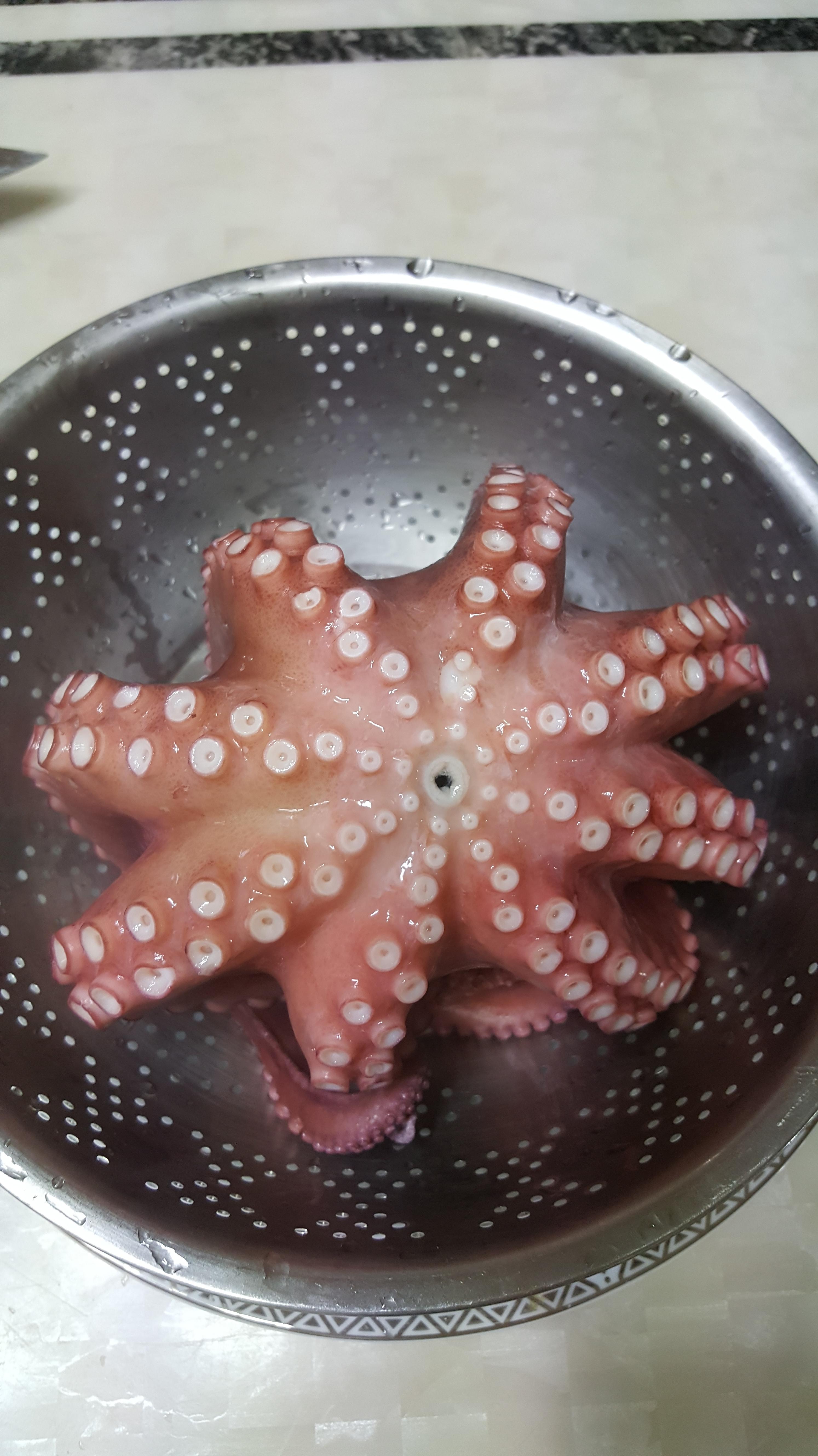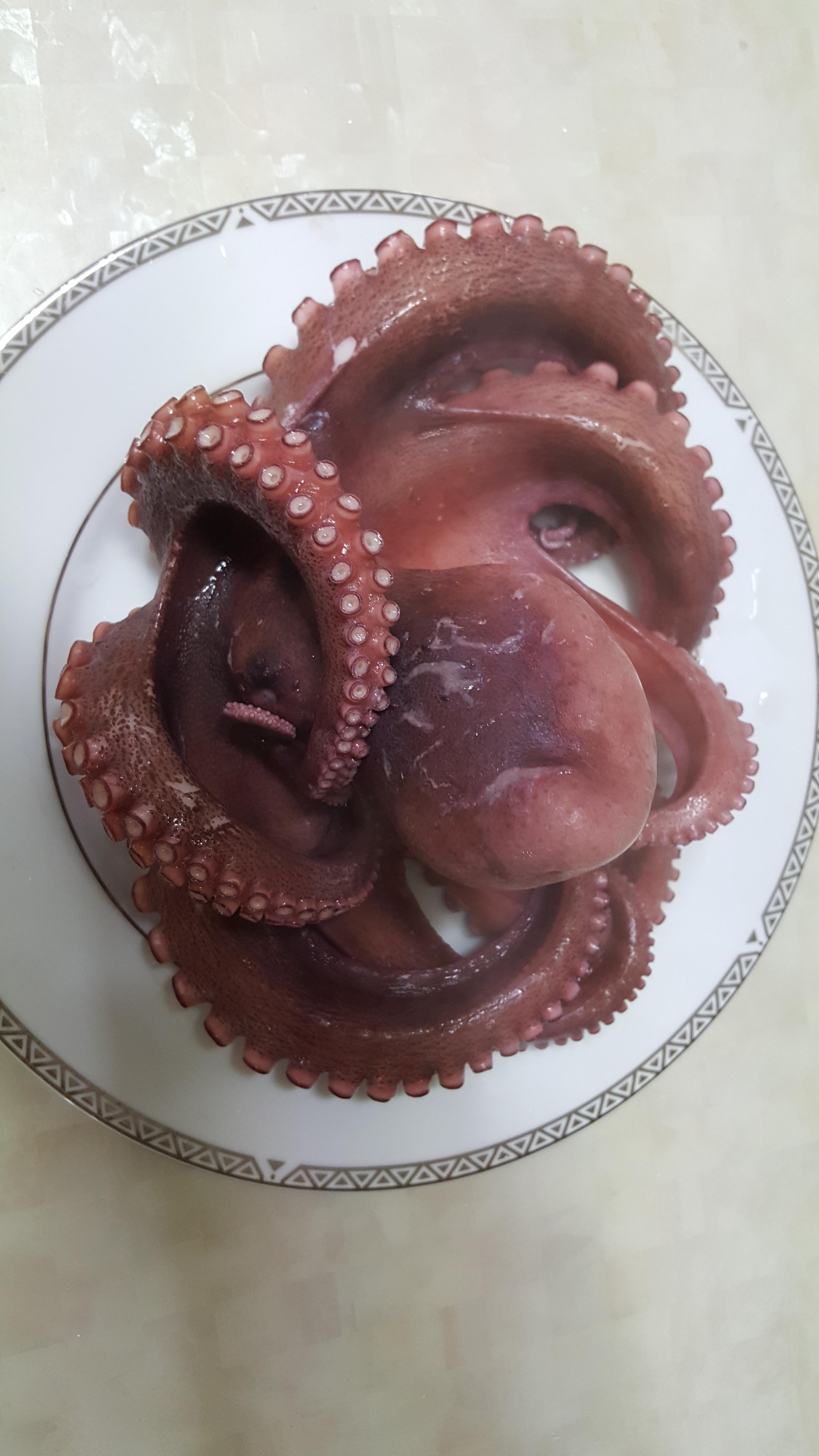통영에서 주문한 1킬로 짜리 돌문어, 신선한데다 양파 넣고 삶으니 야들야들, 쫄깃한 식감이 최고!