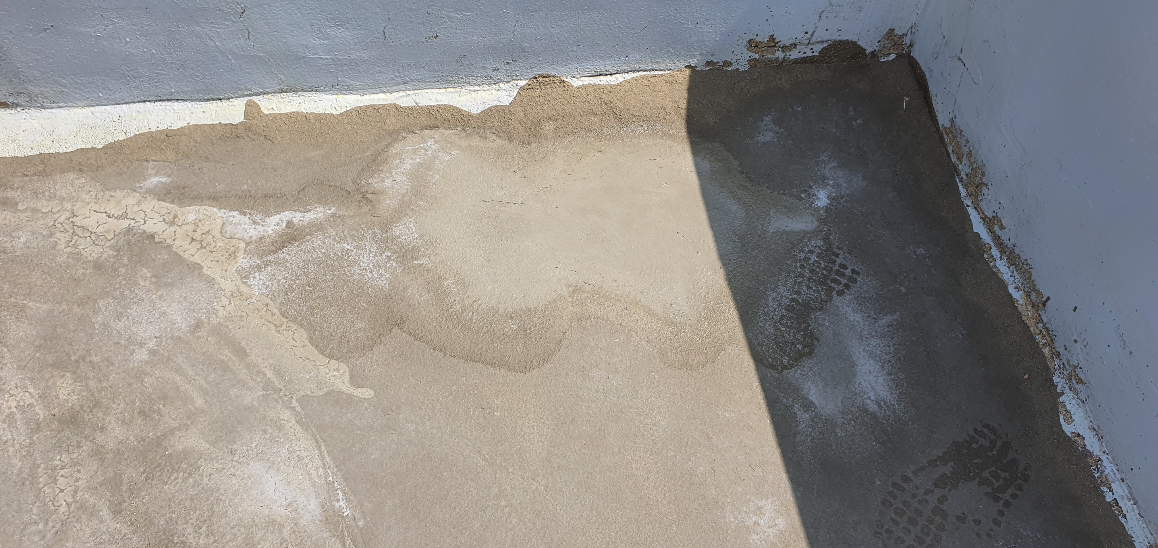 초속경 몰탈로 물고이는 곳 수평잡기와 패인 난간 등을 보수하고, 프라이머 재도장, 우레탄 실리콘으로 크랙보수와 벽바닥 조인트 부분을 메꿔준다. 더위와 여러날 피로 누적으로 생각보다 진도가 느렸지만 이제 마지막 방수액 도포 단계로 넘어간다.