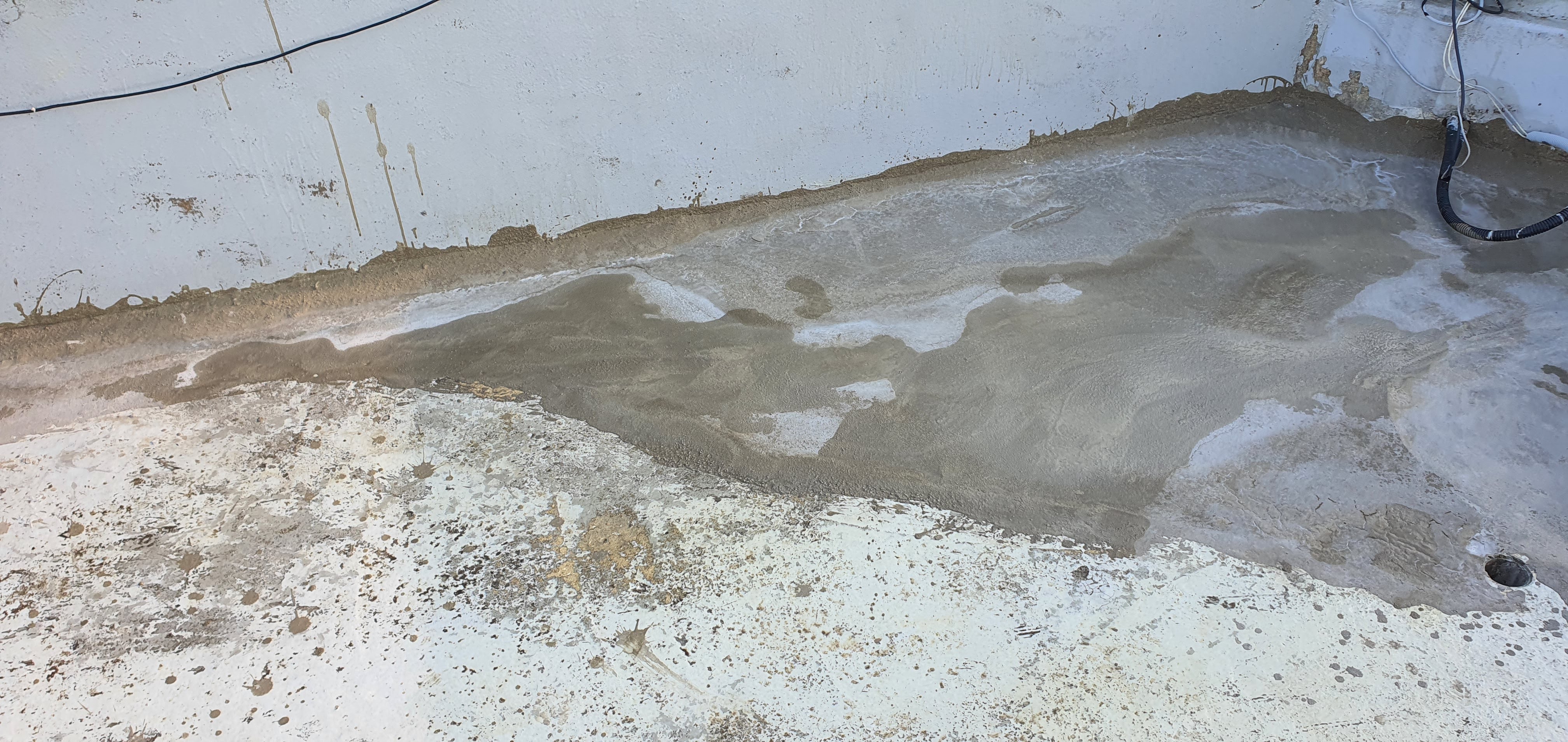 방수프로+레미탈 시공시 여기저기 떨어진 레미탈 가루와 덩어리, 초속경몰탈 잔여물때문에 물청소를 다시 한번 진행하다보니 시간 지체된다.