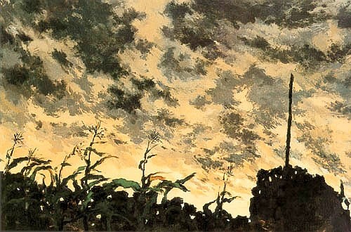 강요배의 풍경에서 가장 극적으로 요동치는 소자(素子)는 '바람'과 소금기가 코끝에 스치는 '습기'이다. 어둑한 날의 우울감이 밴 색조에다 그 심리적 무게를 지탱하는 밀도 높은 터치가 신산스런 효과를 자아내고 있으며, 거기에 눈에 뵈지 않는 바람과 눅눅한 습기까지 포착하는 작가의 눈길. 풍경은 그저 바라보이는 것이 아니라 사람을 간단없이 뒤척이게 한다.
