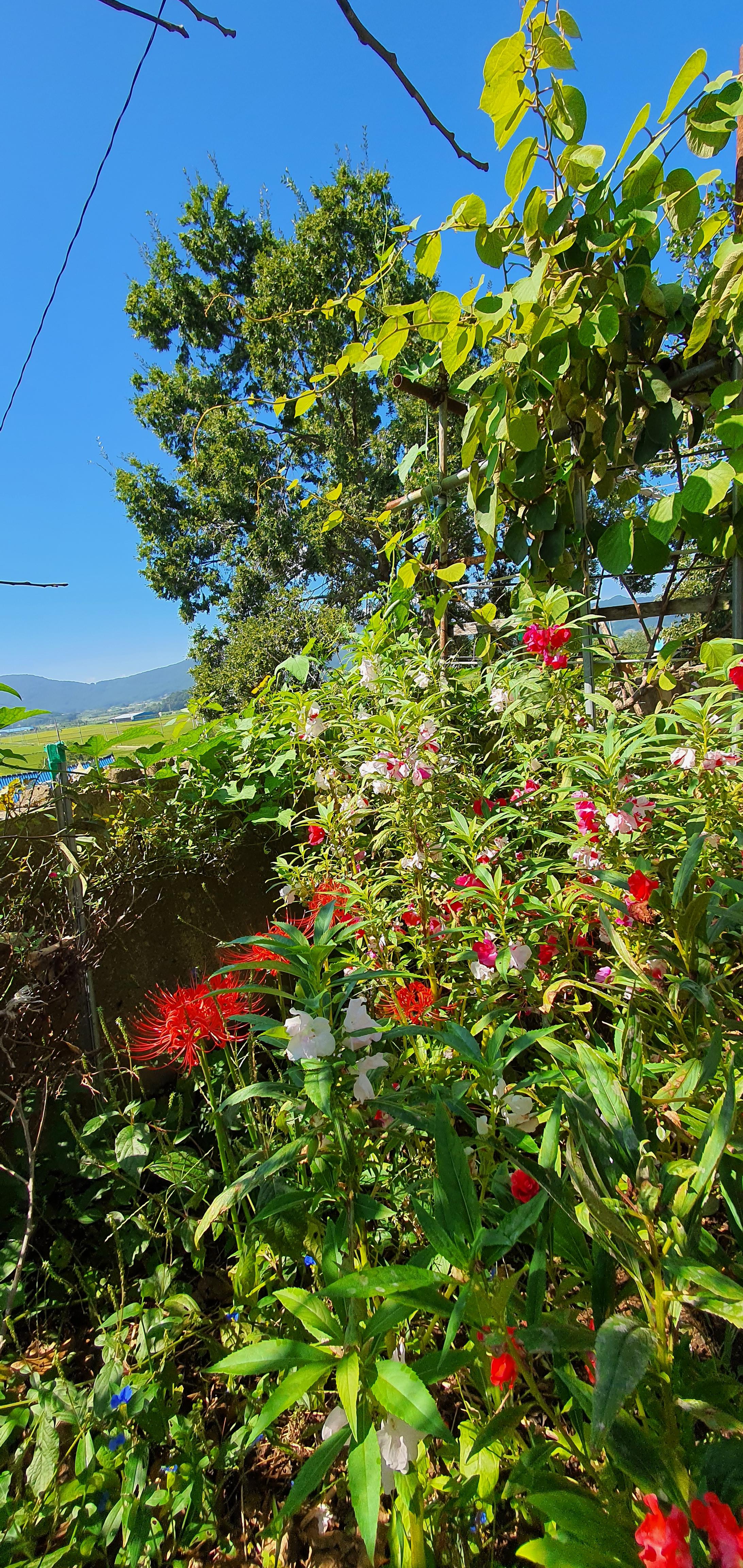 집안팎 꽃무릇, 봉숭아, 배롱나무꽃, 코스모스 등 가을꽃이 지천이다.