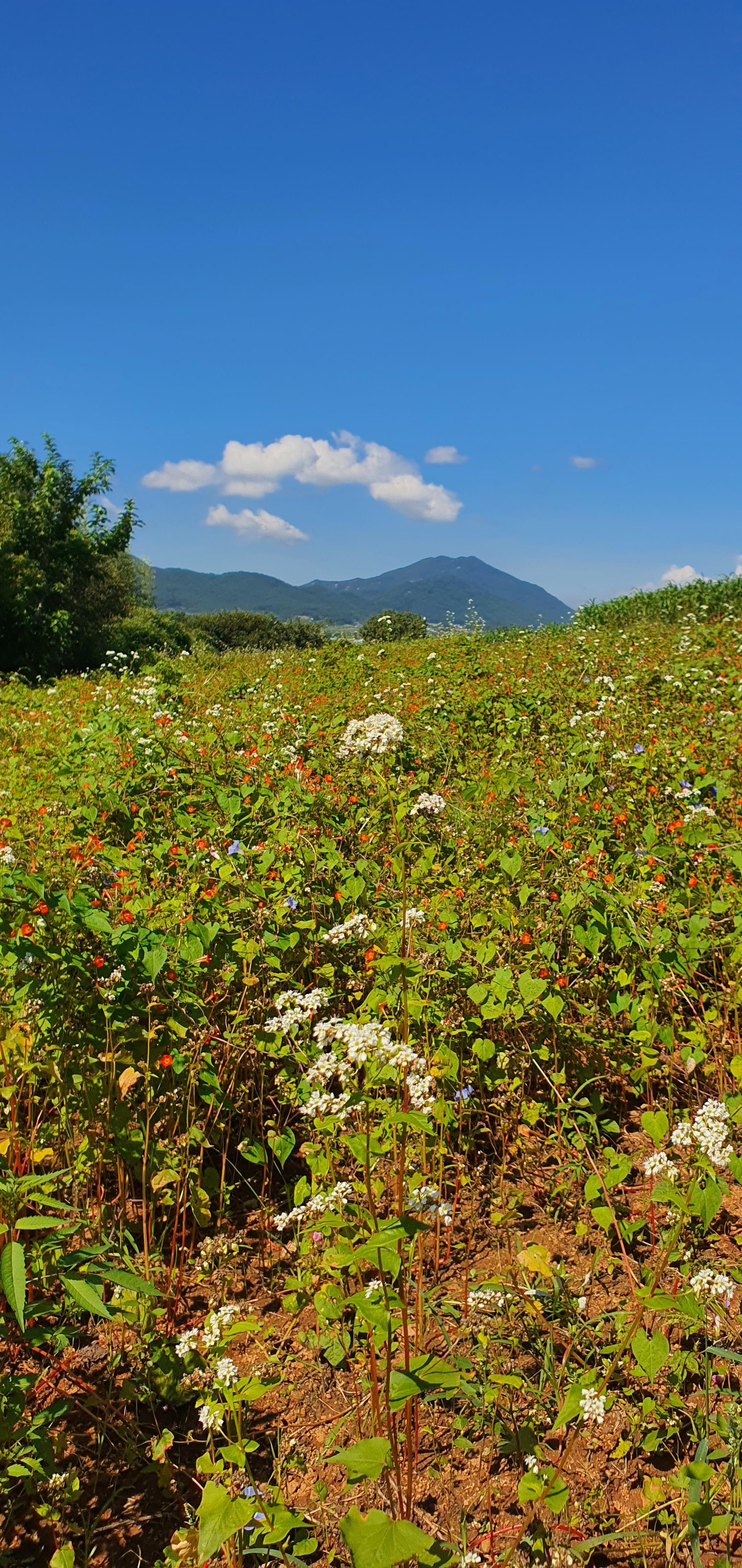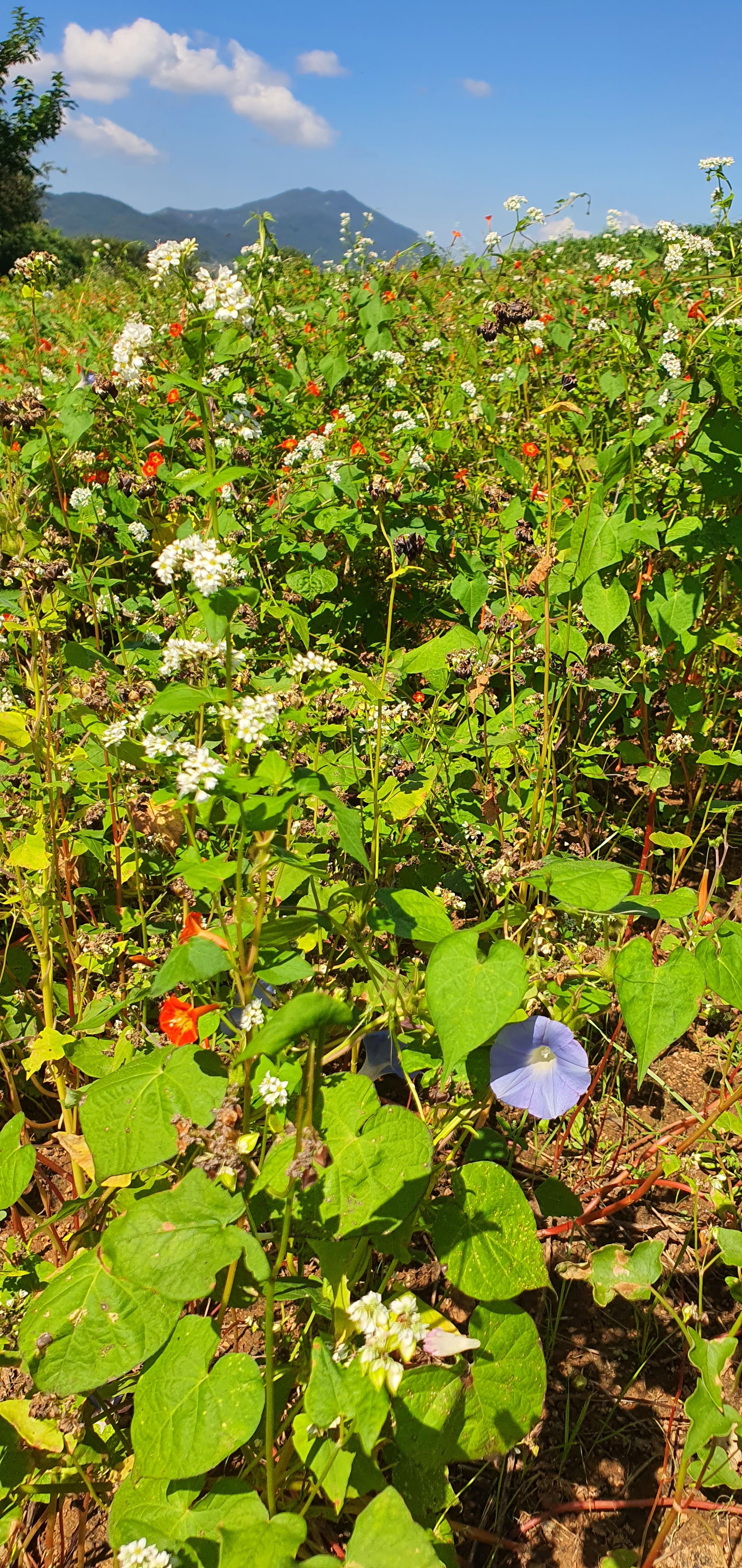 옆집 메밀밭은 메밀꽃과 나팔꽃, 유홍초, 닭의장풀, 개망초가 어우러진 꽃밭으로 변신!