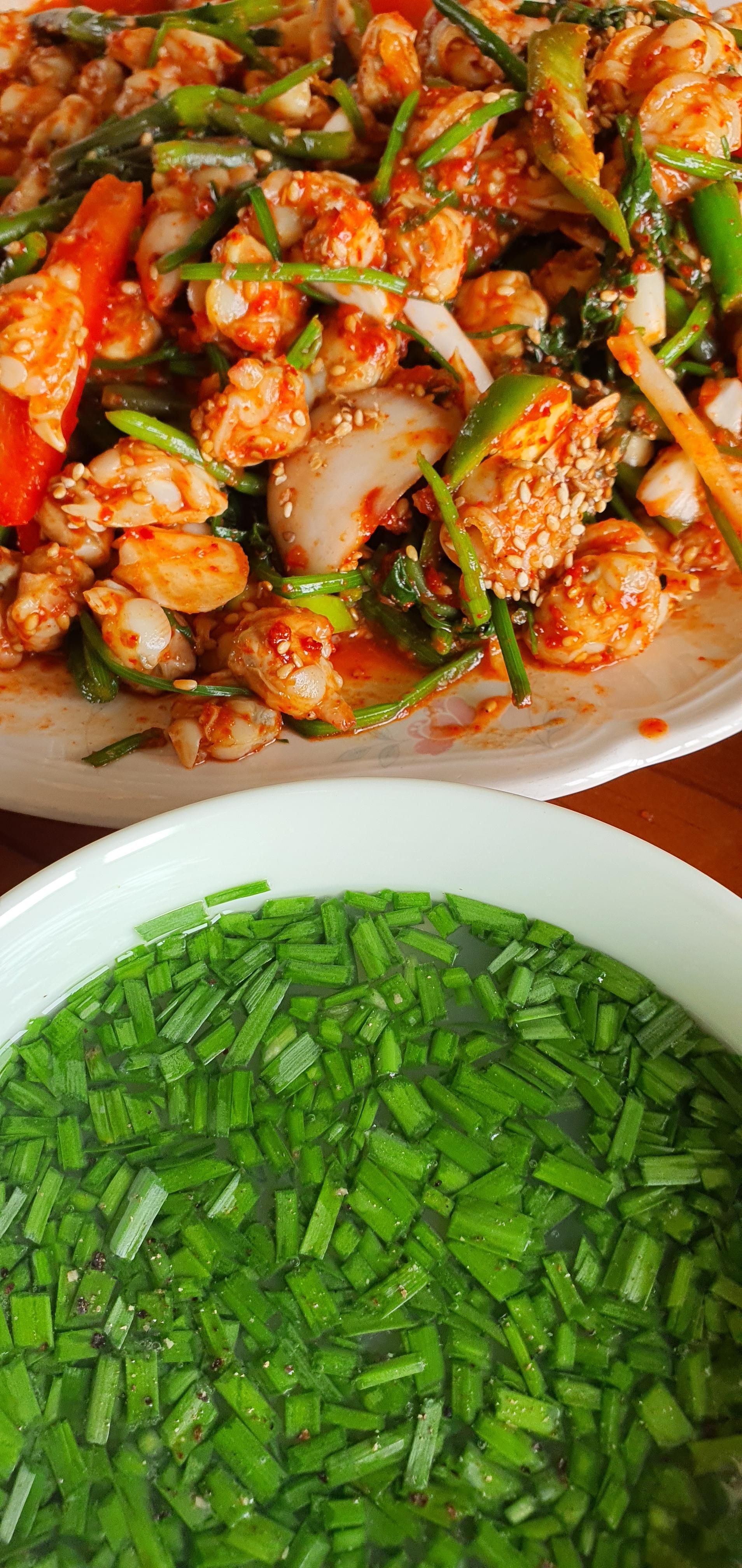 동죽과 부추를 넣고 부쳐낸 동죽 부침개는 막걸리 안주로, 부추를 송송 썰어넣은 동죽탕은 시원하게 해장에 좋다.