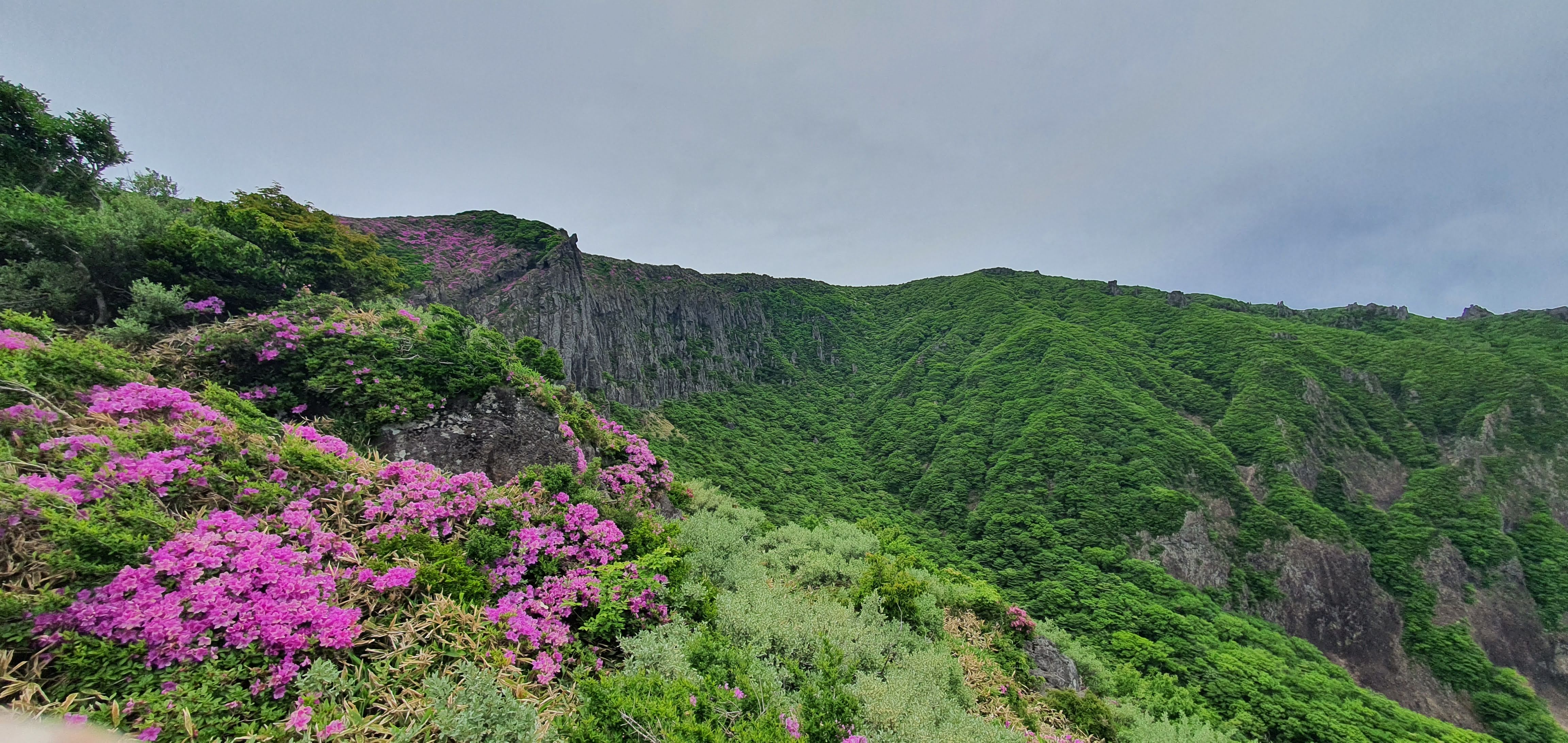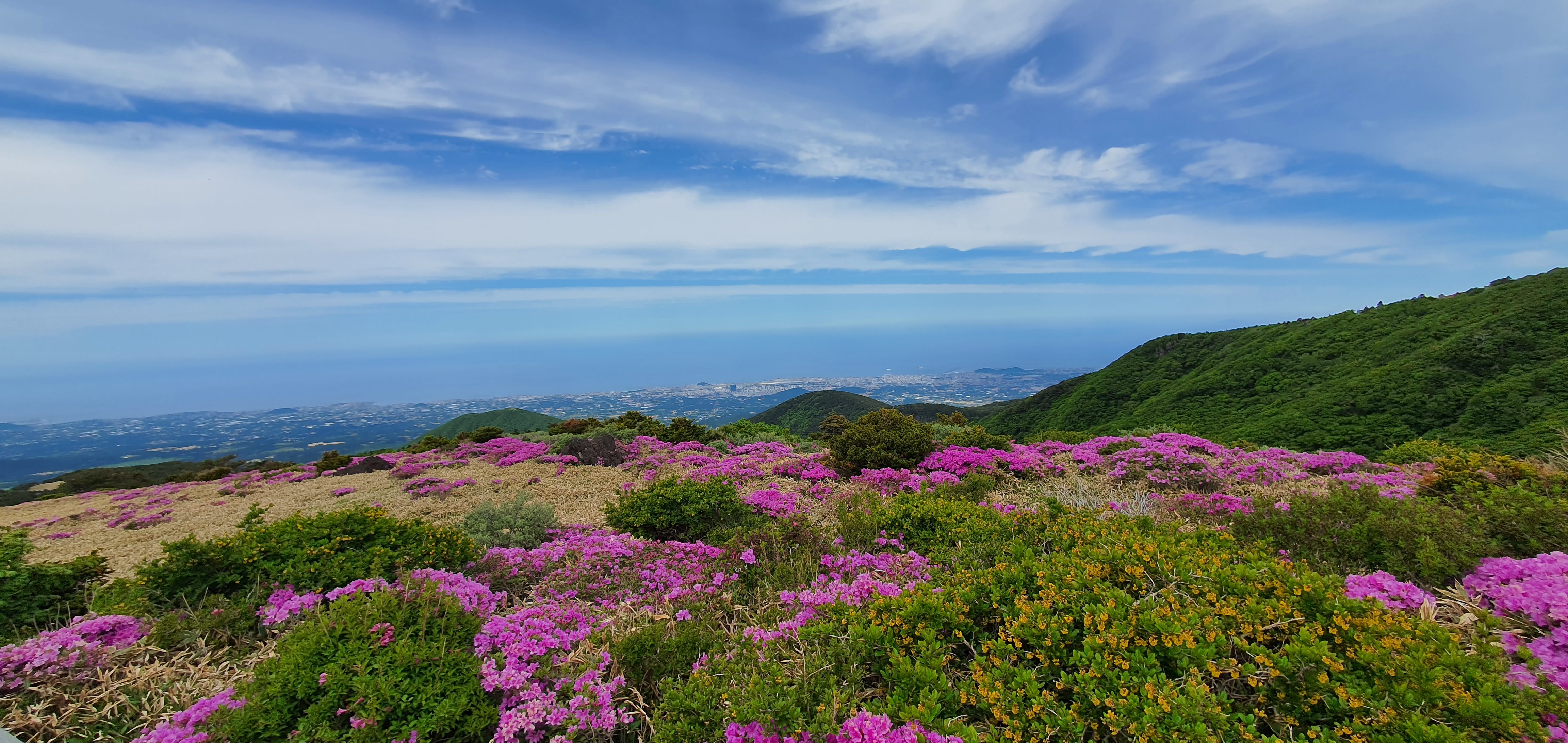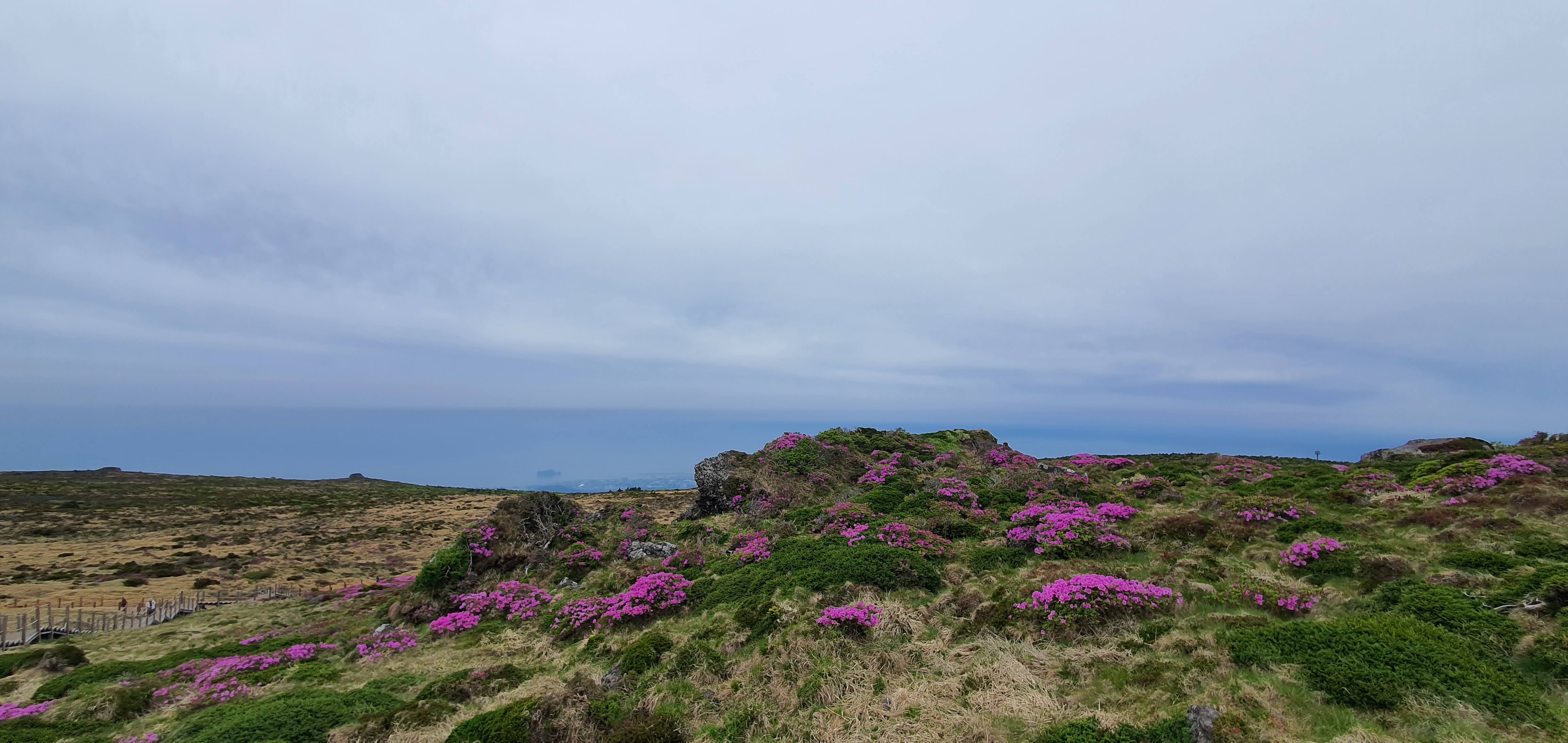 선작지왓은 조릿대가 장악했으나 1600M 평탄한 고지에 구불구불 탐방로와 철쭉, 남벽이 어우러진 풍경이 김종철의 <오름 나그네> 속 '늦봄, 진달래꽃 진분홍 바다의 넘실거림에 묻혀 앉으면 그만 미쳐 버리고 싶어진다.'다는 옛모습은 아니지만 충분히 즐길만하다.