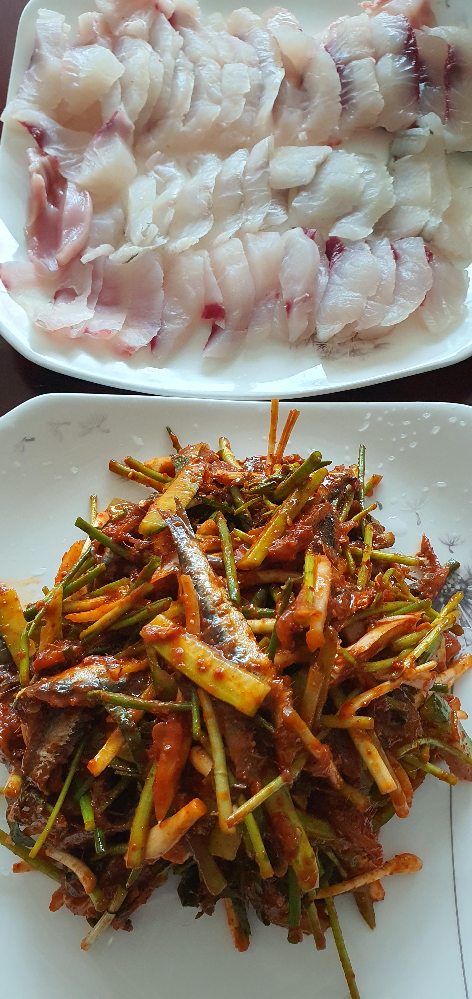 전에 시켜먹던 멸치보다 씨알도 굵고, 싱싱한 멸치! 숭어밤까지 챙겨주신 보리숭어와 제철 회.