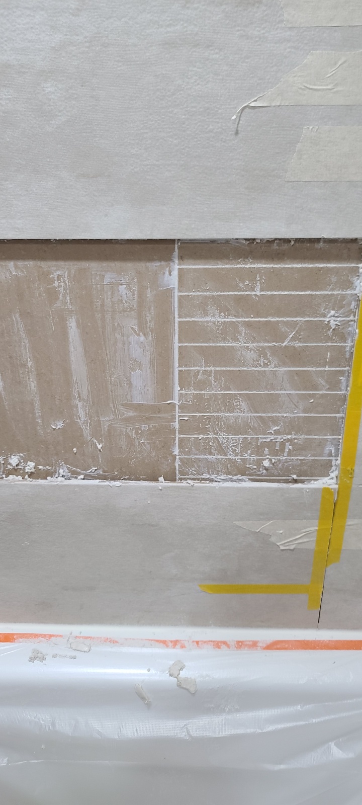 다음날 어느 정도 건조가 된 이후 제거한 타일 붙이기.