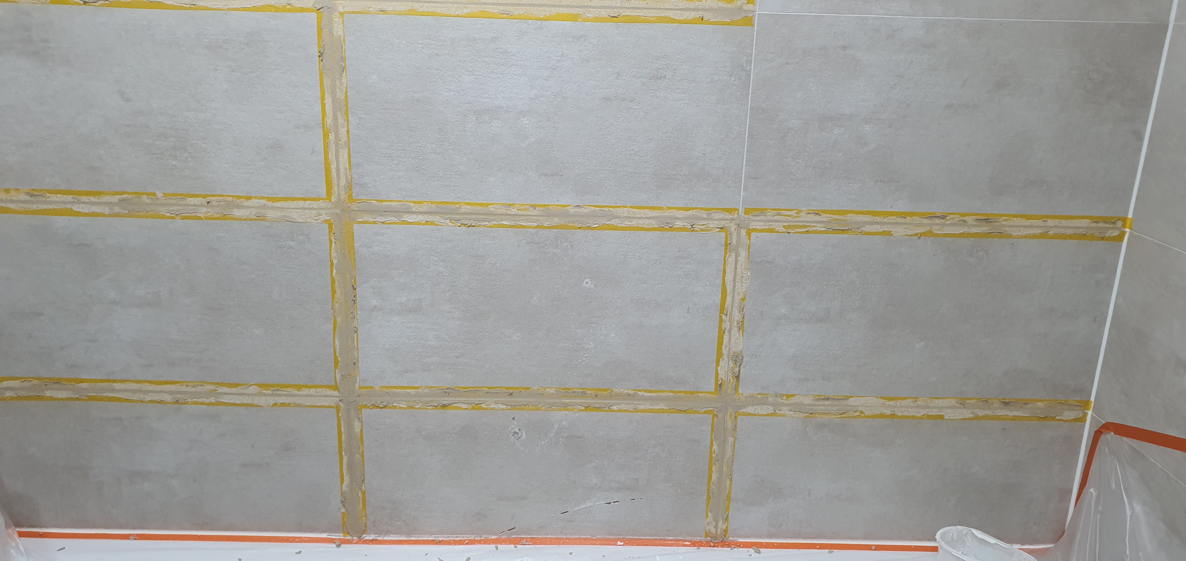 어떤 전문가의 유튜브 영상에서 보니 커터칼로 줄눈을 조금씩 걷어내는 것을 보고 영혼과 시간을 갈아 300x600 타일 두 개의 줄눈 제거.